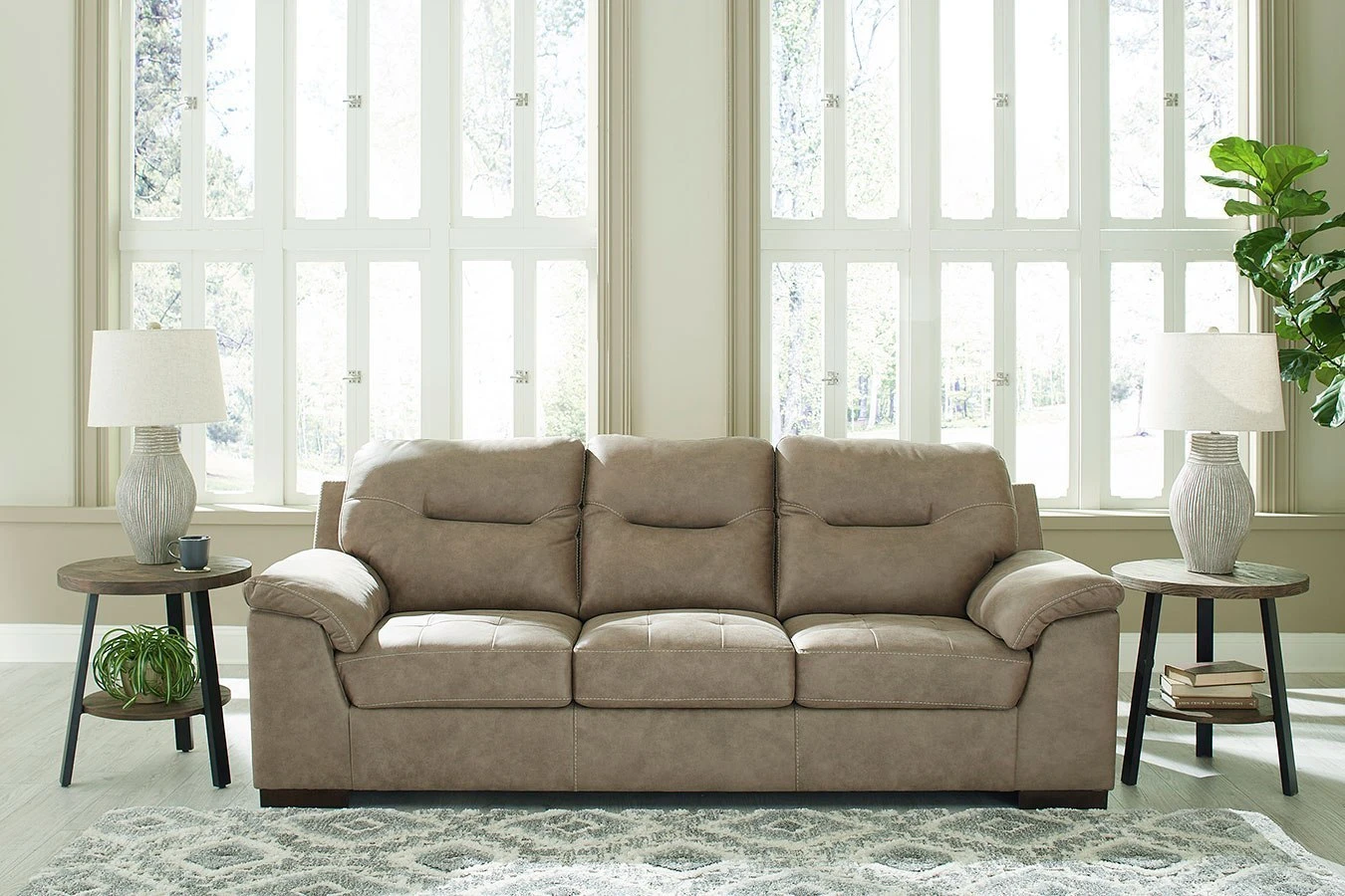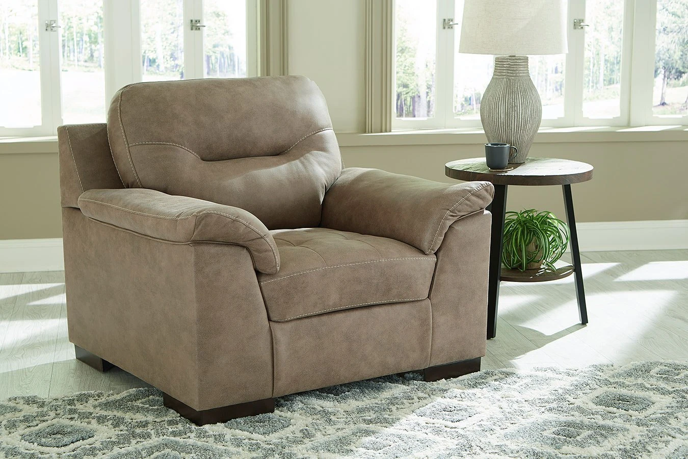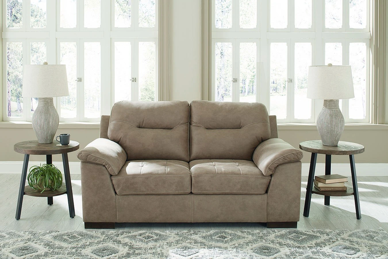 - OverviewThe Maderla Living Room Collection by Signature Design features contemporary style, polyester/PU upholstery and Pebble color. Cushions are constructed of low melt fiber wrapped over high quality foam.