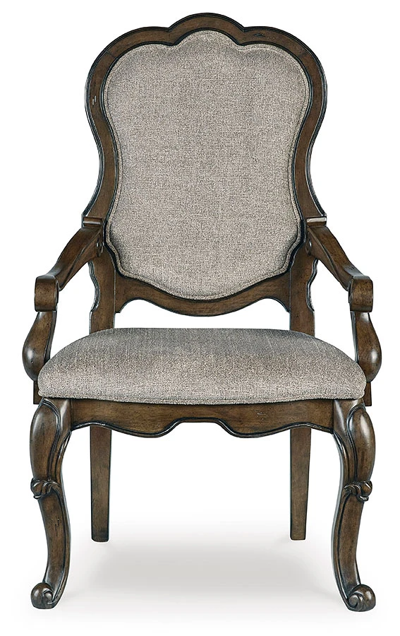 - OverviewFrom the ornamental appliques to the large scale, this Maylee Arm Chair by Signature Design makes a bold statement. With shapely legs and a plush cushioned seat and back, the opulent piece wows with stunning style. The look is timeless. The feel? Right at home.