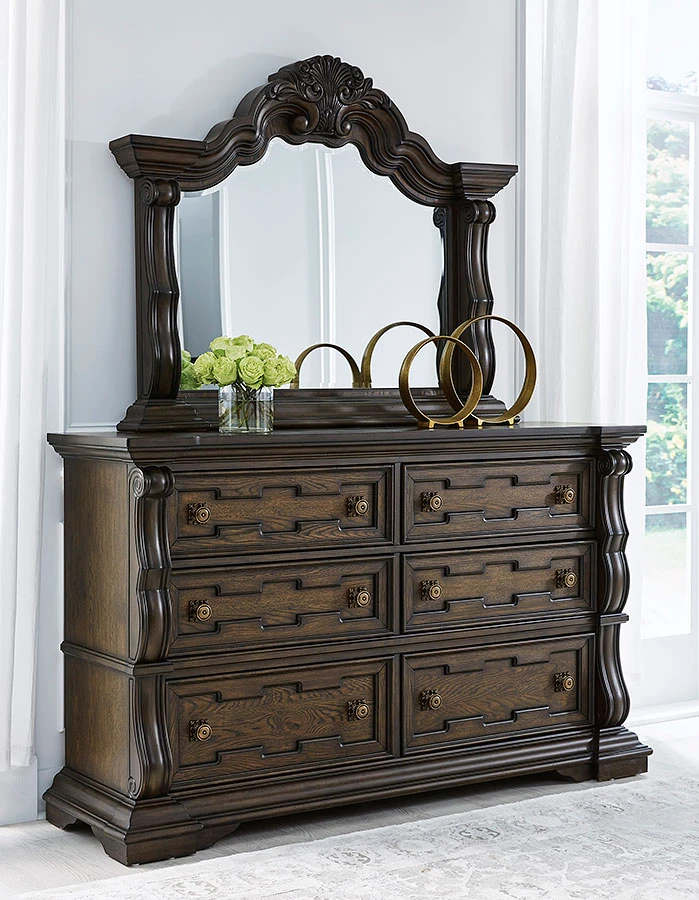 - OverviewFrom its ornamental appliques to its large scale, this Maylee Dresser by Signature Design makes a bold statement. Spacious drawers store your clothes, jewelry and more in stunning style. The look is timeless. The feel? Right at home.