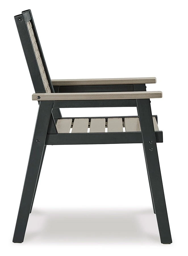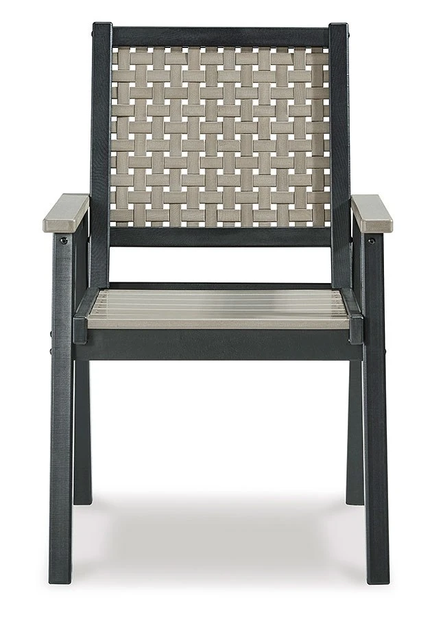 - OverviewOn-trend stylings take to the outdoors with this Mount Valley arm chair by Signature Design. Its two-tone look in driftwood and black has a laid-back luxe appeal. High design meets durability with this outdoor chair’s weather-resistant HDPE construction – a stunning display of form and function.