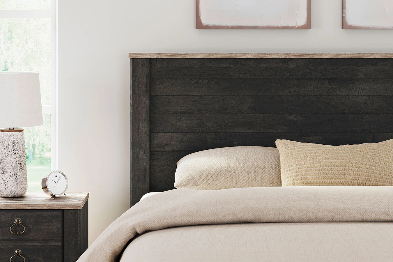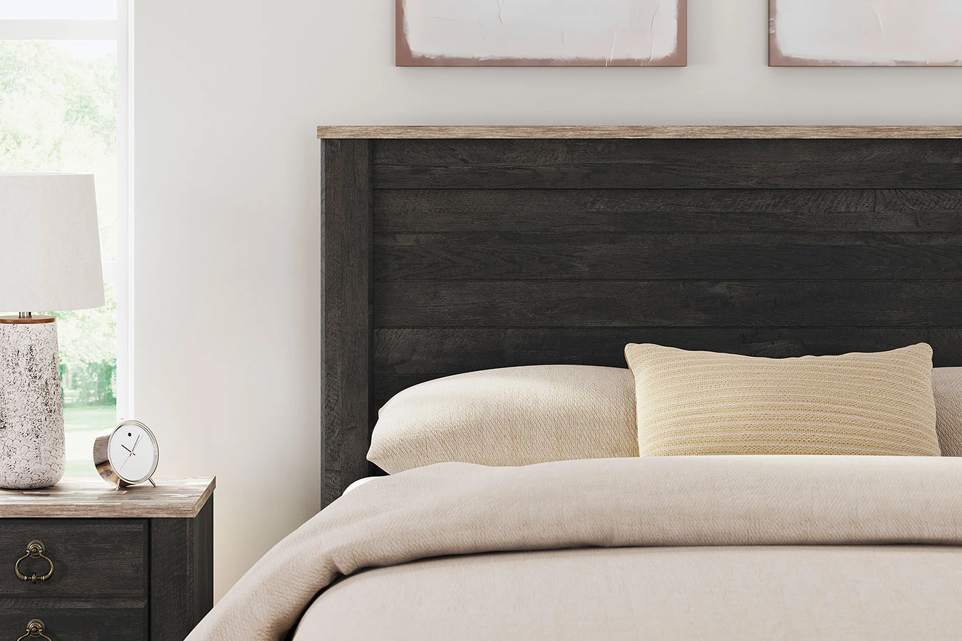- OverviewCharming French farmhouse aesthetics. Deep, industrial-inspired hues. This Nanforth Panel Bed by Signature Design balances beautiful simplicity with the luxurious details of yesteryear. The distinct two-tone finish is bold without sacrificing the piece’s quaint character. And with its stunning large-scale silhouette, this bed is sure to appeal to your unique eye for vintage-inspired design.