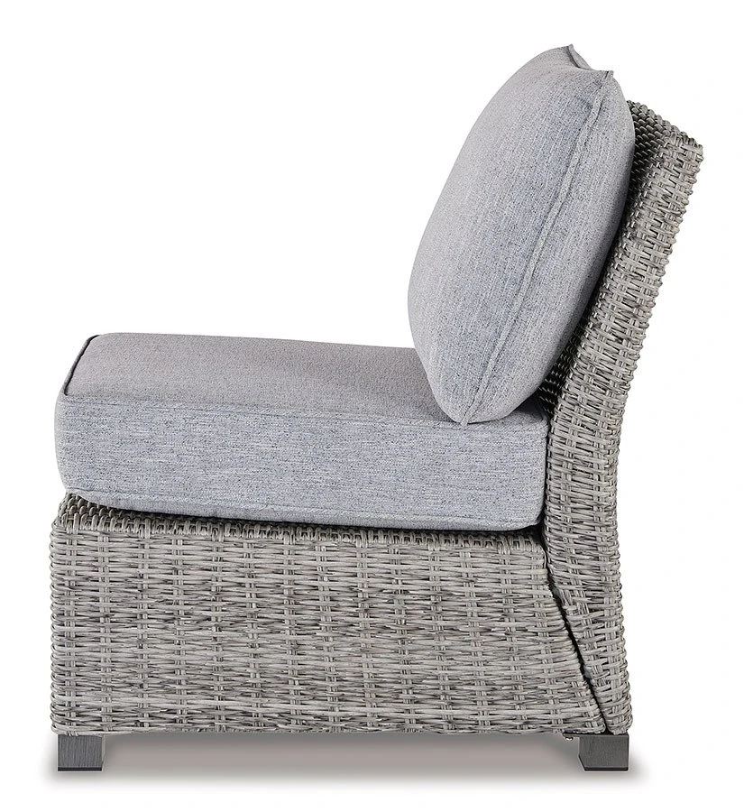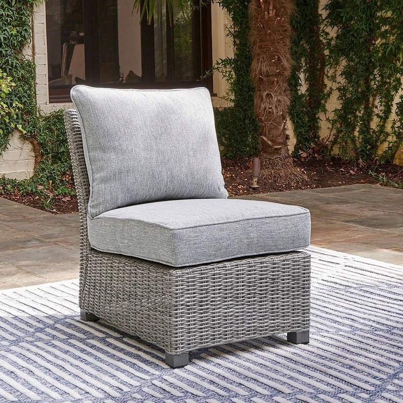 - OverviewIndulge in backyard bliss. This Naples Beach Outdoor Seating Collection by Signature Design has a straightforward sense of style with its light gray resin wicker and wood-look finish. Gray high-performance Nuvella Premium fabric covers the cushioned seat and back, weathering the elements and keeping your aesthetic casually cool.