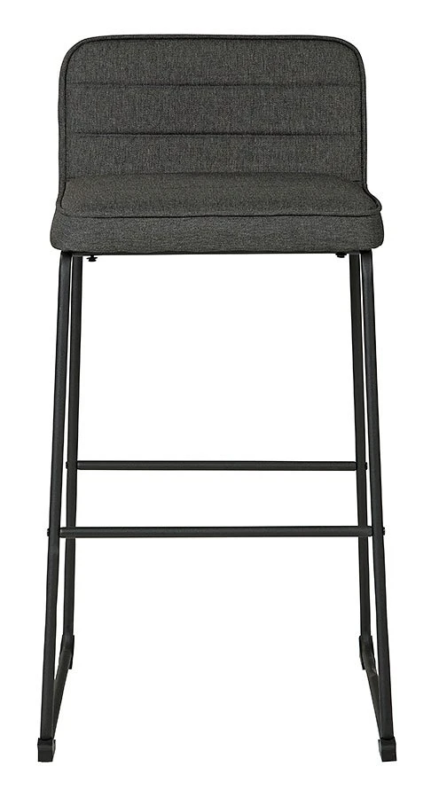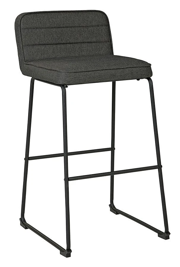 - OverviewServe up an ultra-contemporary look at a comfortably cool price with this Nerison low back bar stool by Signature Design. Sleek yet sturdy tall bar stool includes black tubular metal legs, comfortably cushioned seats wrapped in a gray woven upholstery and distinctive horizontal channel tufting for a deliciously upscale aesthetic.