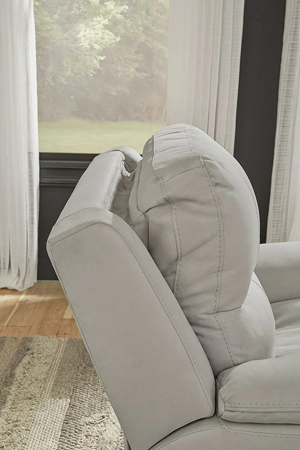 - OverviewPrepare to be moved, because this Next-Gen Gaucho power reclining sofa by Signature Design is not only fashionable and functional but also a whole lot of fun. With its warm and neutral tones and soft, plush microsuede upholstery, this highly contemporary piece suits your relaxed style. An adjustable headrest, extended ottoman and zero-gravity mechanism are yours at the touch of a button. Given the modern features, scoop seating and ample back pillow support, you’ll find it all too easy to get lost in comfort.