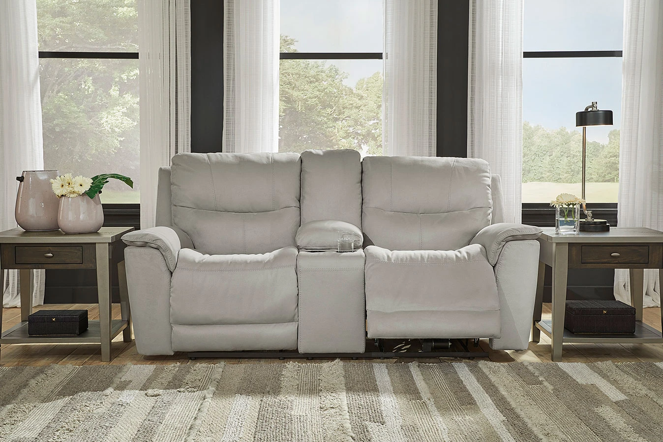- Default Set Includes1 x Next-Gen Gaucho Fossil Power Reclining Sofa w/ Adjustable Headrests 1 x Next-Gen Gaucho Fossil Power Reclining Console Loveseat w/ Adjustable Headrests
