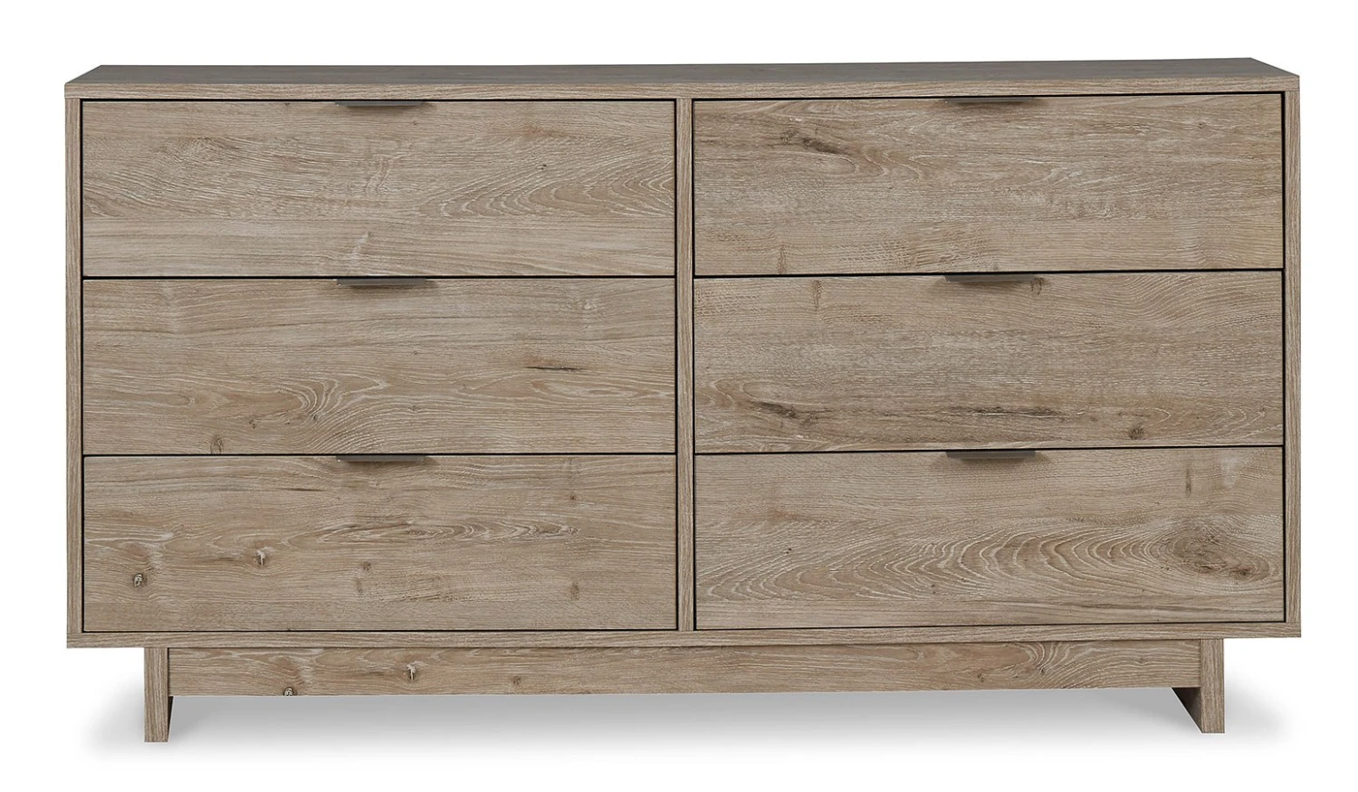 - OverviewBringing big style to your living space, this Oliah dresser by Signature Design is a smart choice for those with an eye for contemporary design. Its clean-lined profile and understated refinements create a simple silhouette that works in so many settings. Flush-mount drawers with integrated pulls keep this piece on the cutting edge of cool.