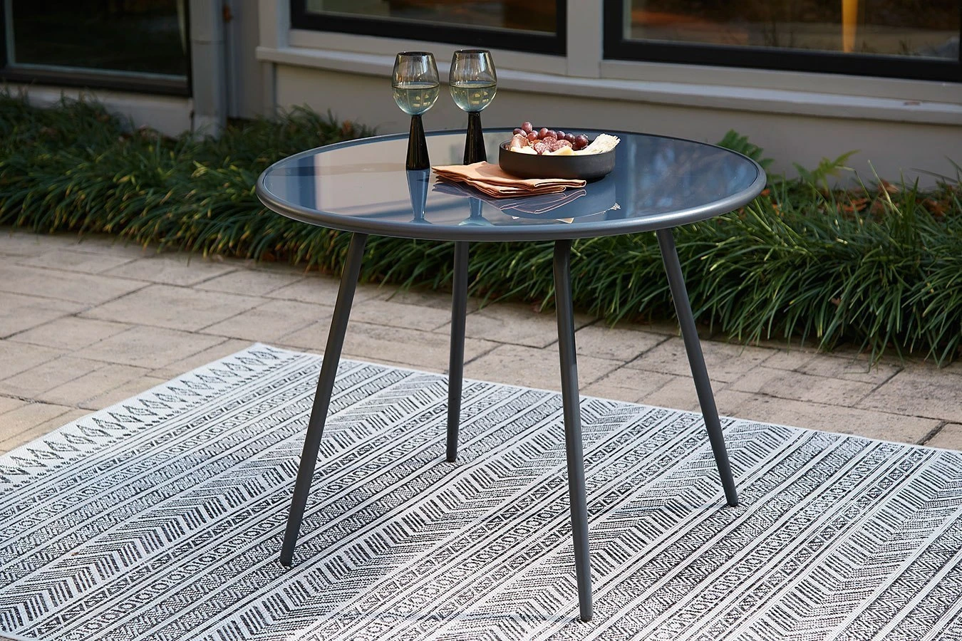 - OverviewExperience blissful outdoor dining with this Palm Bliss Outdoor Dining Table by Signature Design. Its contemporary flair keeps your outdoor space looking stylish year-round. A powder coated steel frame can weather the elements and makes alfresco entertaining a breeze.