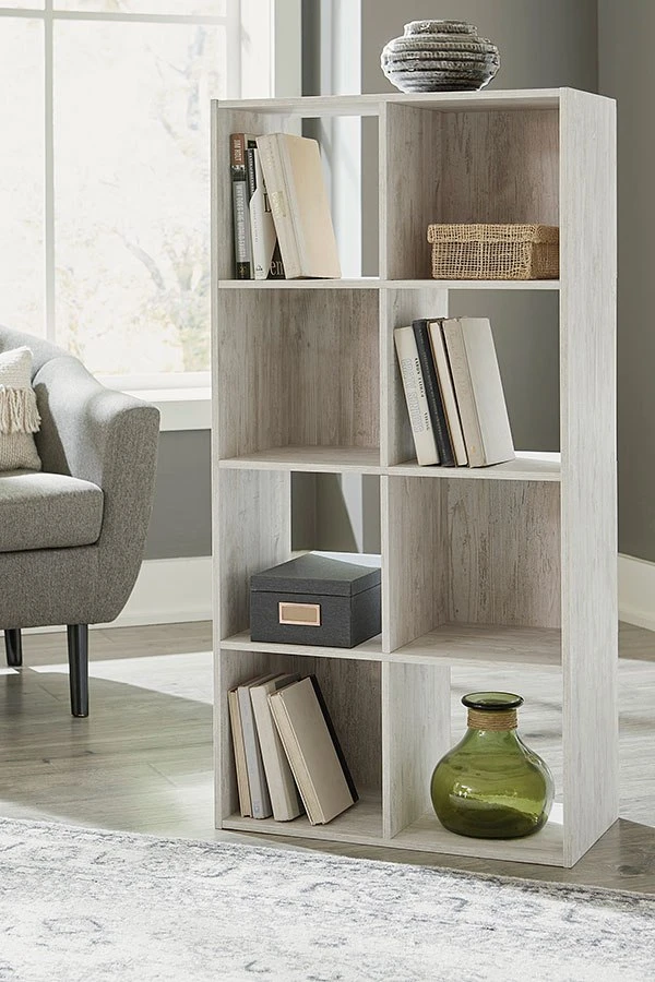 - OverviewIf it’s coastal chic or cottage quaint style you long for, the Paxberry whitewashed eight-cube organizer by Signature Design invites you to go to town. Its distinctive weatherworn finish conveys an easy-breezy sensibility, perfect for a restful bedroom retreat. Open and closed backs make it abundantly practical.