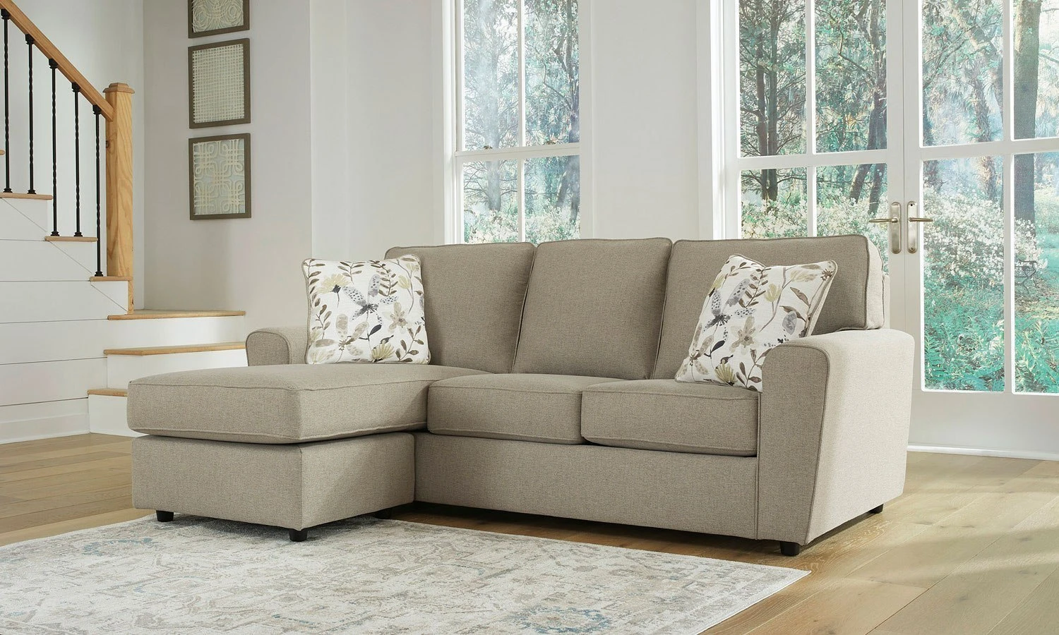 - OverviewTake a tonal approach to at-home comfort with this Renshaw Sofa Chaise by Signature Design. With its simply streamlined structure and neutral upholstery, it easily slips into any scene. With ample space to stretch out, this piece rounds out your relaxed living room assortment.