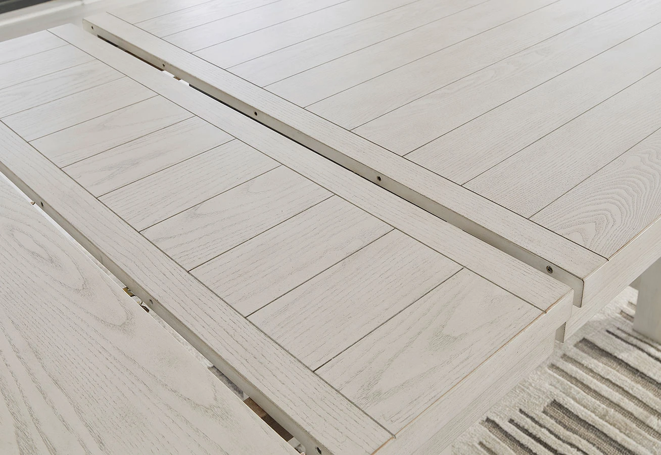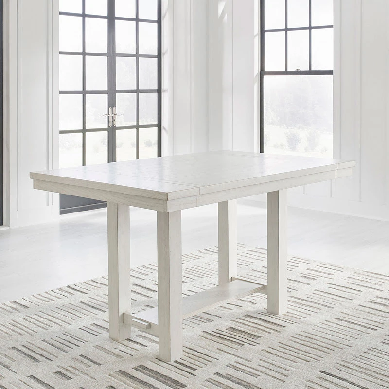 - OverviewThis Robbinsdale Counter Height Dining Table by Signature Design is sure to impress come mealtime. With its antiqued white finish and a planked effect tabletop that extends for additional seating, farmhouse-style dining has never been so fashionable. All that’s missing is you and your family.