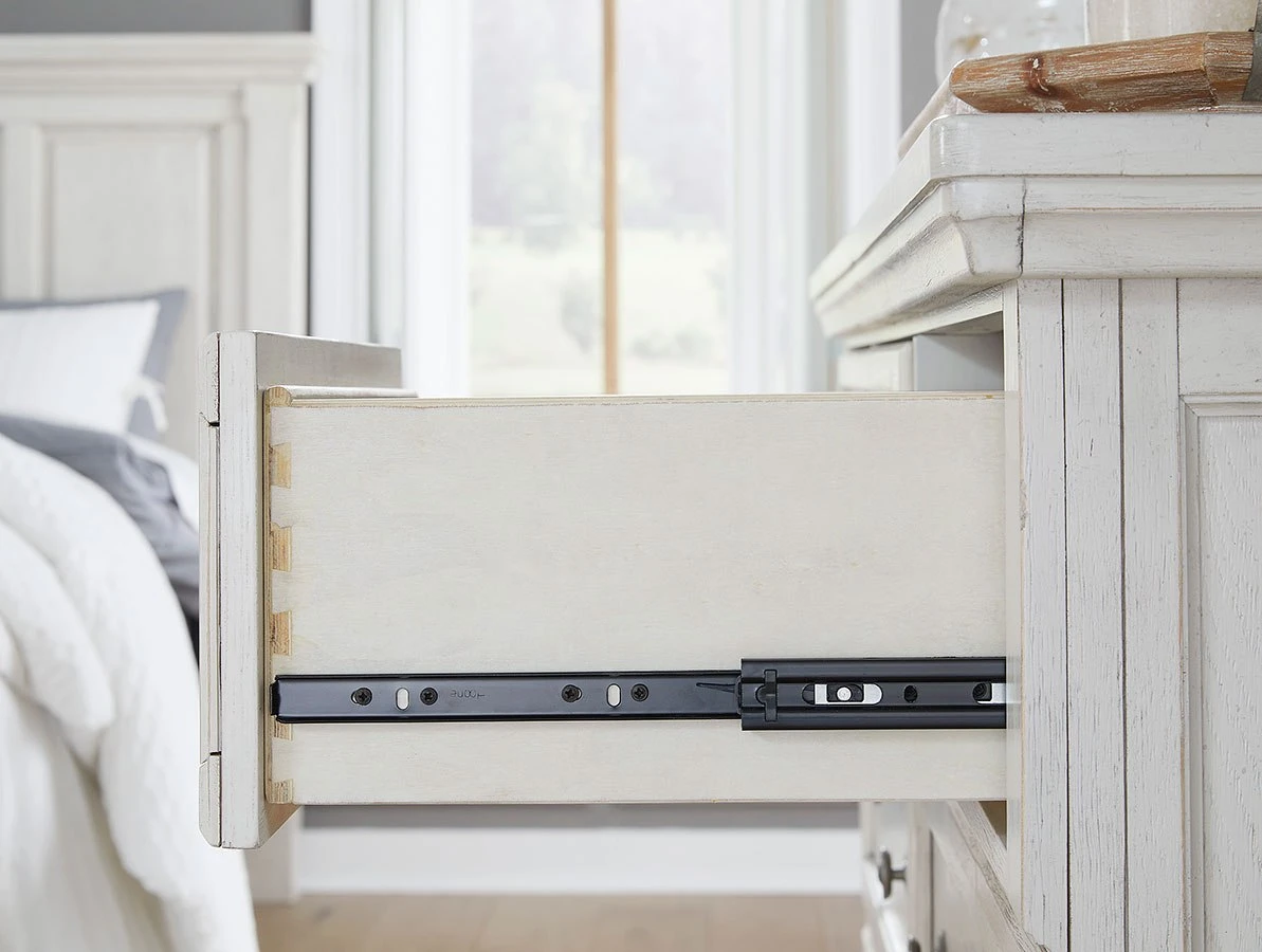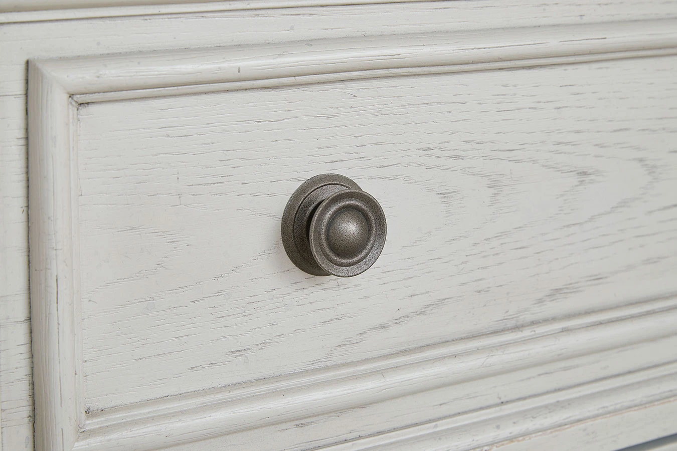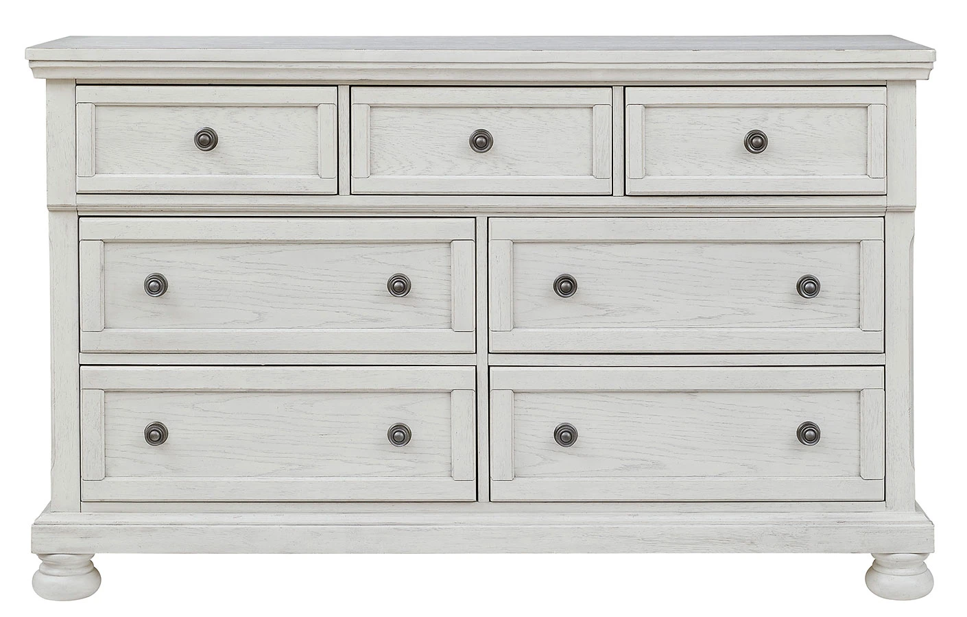 - OverviewThe Robbinsdale Bedroom Collection by Signature Design offers timeless traditional design and is made with select Oak veneer, engineered wood substrate and solid wood components. Antique white finish with a wonderful grain texture.