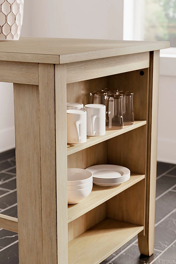 - OverviewShow off your taste for charmingly curated style with this Sanbriar counter height dining table by Signature Design. Mastering modern farmhouse flair, the clean-lined design is outfitted with an open bookcase for chic storage and display space. A light, natural finish inspires delightfully carefree dining.
