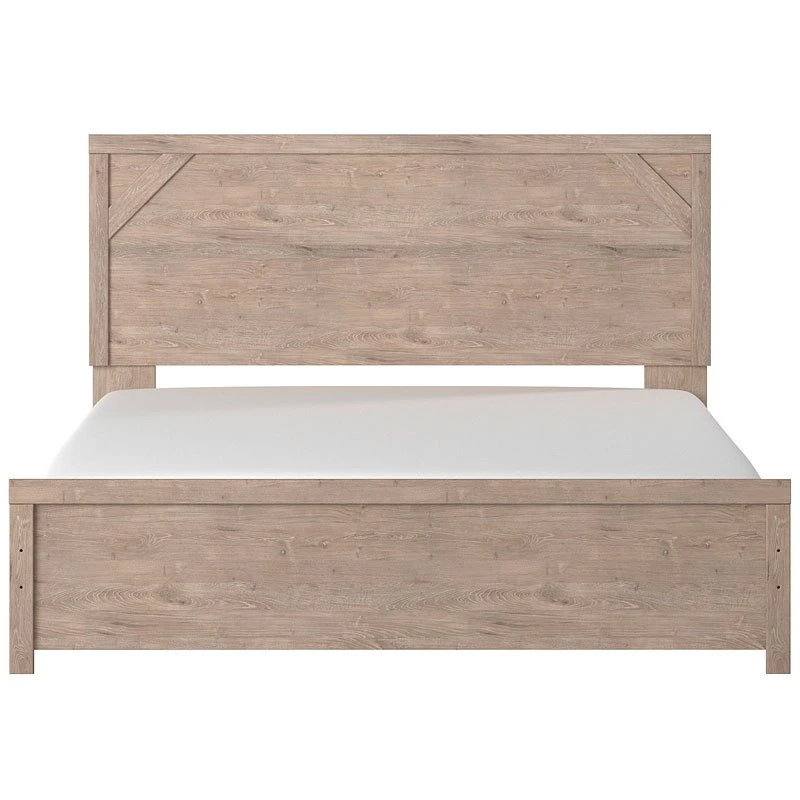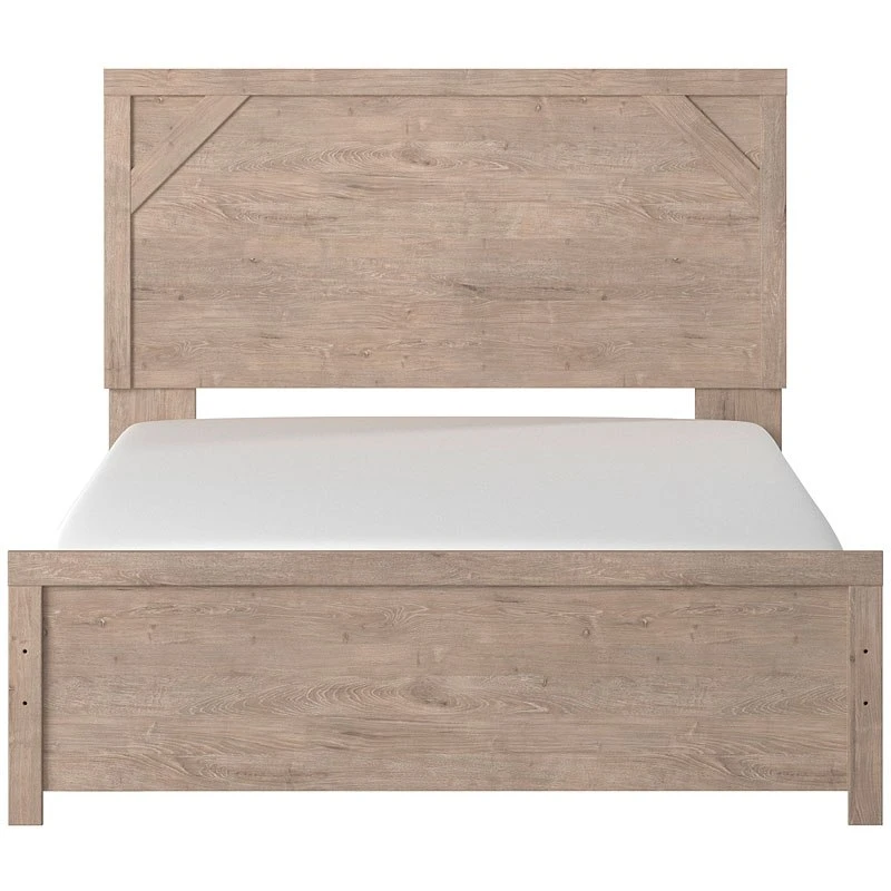 - OverviewCool, clean and casually modern. This panel bed’s light natural finish sets the tone for your calming sanctuary. Framed elements and cross-brace accents add dimension and authenticity to the bed’s simply stunning profile.