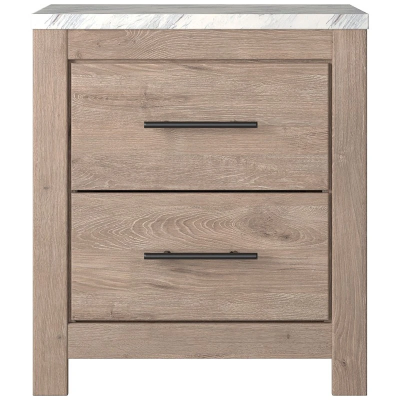 - OverviewCool, clean and casually modern. This collection’s light natural finish and faux Calcutta marble tops set the tone for your calming sanctuary. Large linear pulls add dimension and authenticity. Smooth-gliding drawers neatly accommodate your wardrobe needs.