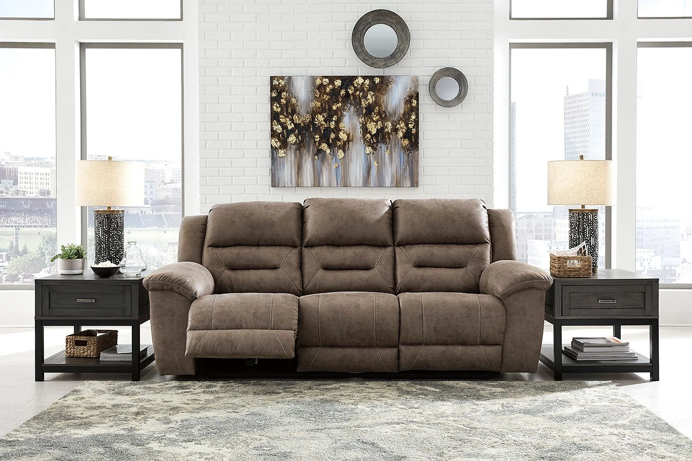 - OverviewThe Stoneland Power Reclining Living Room Collection by Signature Design features contemporary style, polyester/pu upholstery and Fossil color. The power reclining mechanism features infinite positions for comfort.