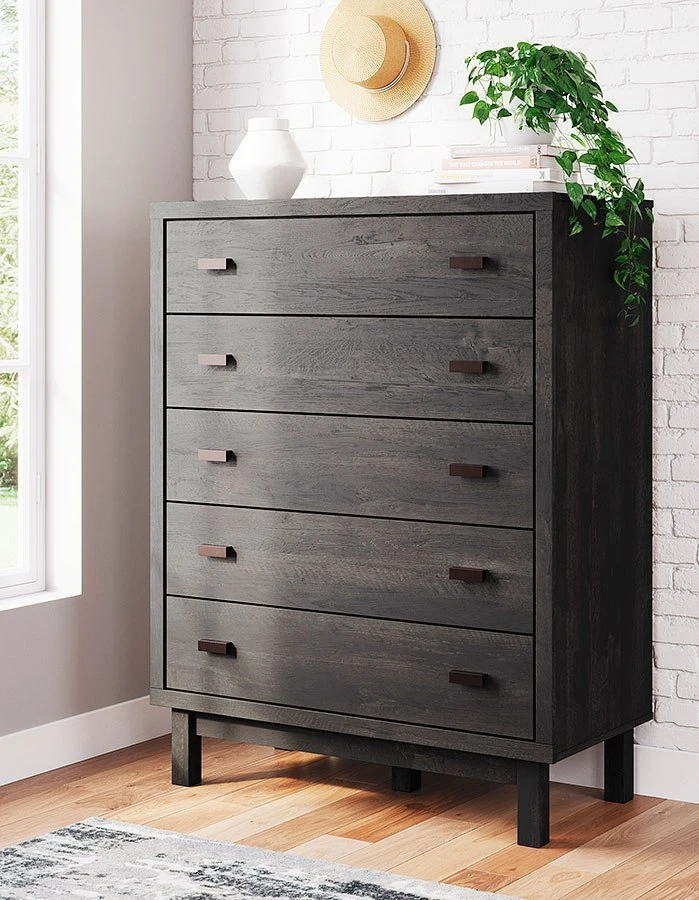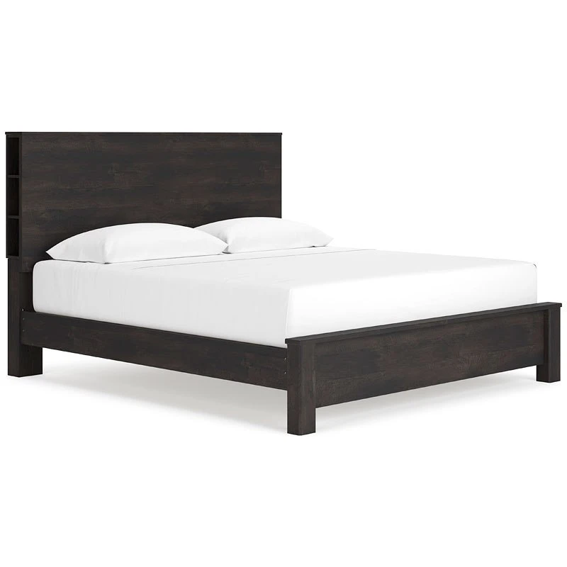 - OverviewLess. Never more beautiful. Rich in rustic yet contemporary character and decidedly simple on the details, this Toretto Bedroom Collection by Signature Design maximizes the beauty of minimalism. Easy-on-the-eyes elements include block bases and a rustic charcoal finish that gives the wood grain aesthetic a highly modern feel. Slim profile dual USB chargers included with the modern bookcase headboard. The bed doesn’t require additional foundation/box spring.
