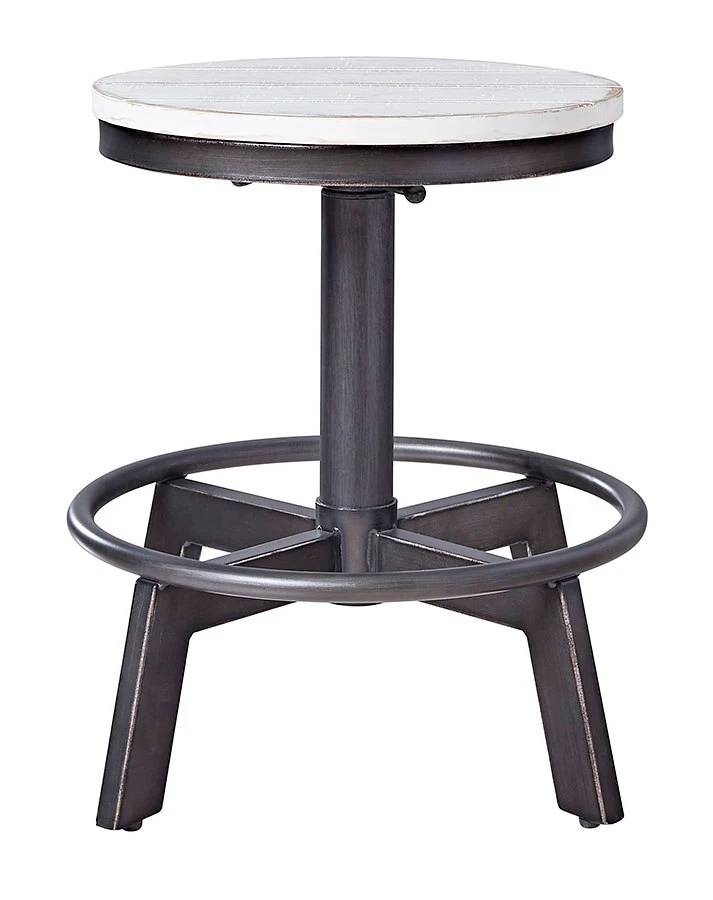 - OverviewMake your home the hub for cool vibes with this Torjin Stool by Signature Design. Its two-tone finish scheme of vintage white and aged gunmetal is full of urban industrial swagger. The stool’s adjustable height is accommodating for you and your guests. Add it behind your sofa with a long counter table for a dapper eating or working space.