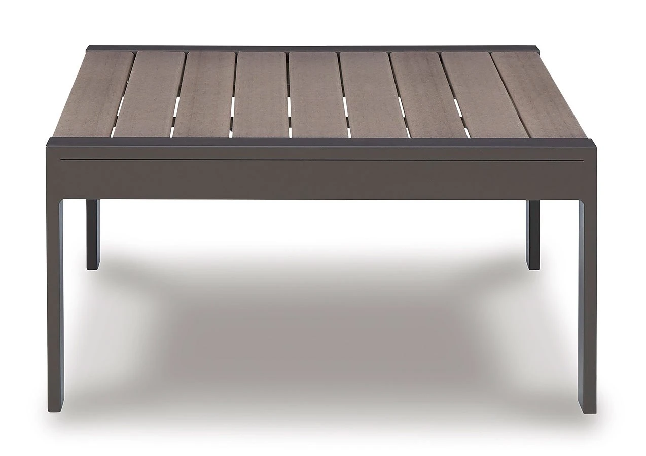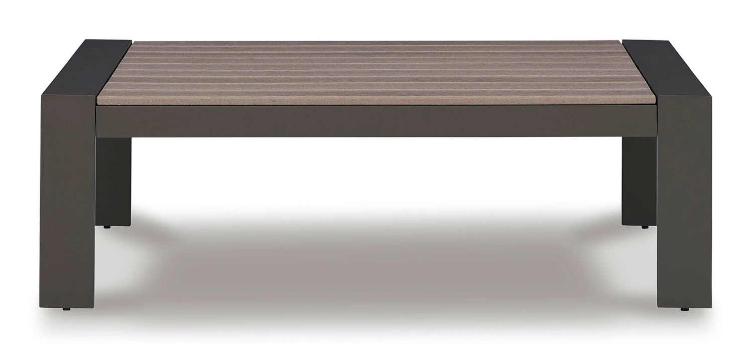 - OverviewNatural neutrals are all the rage these days. Embrace the style trend with this Tropicava outdoor coffee table by Signature Design. Crafted with a mix of aluminum and an HDPE material for exceptional durability and weather resistance, this table takes outdoor living to a whole new level.