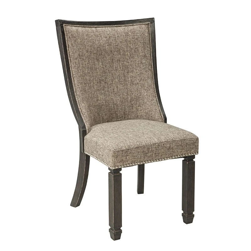 - OverviewInvite your family into the heart of your home with the Tyler Creek Upholstered Chair by Signature Design. Framed back and tapered legs are a sturdy foundation. The black finish is beautifully textured. The heavily woven fabric has a quality feel-good touch. Silvertone nail head trim is decorative without all the fuss. This is trend-right urban farmhouse style.