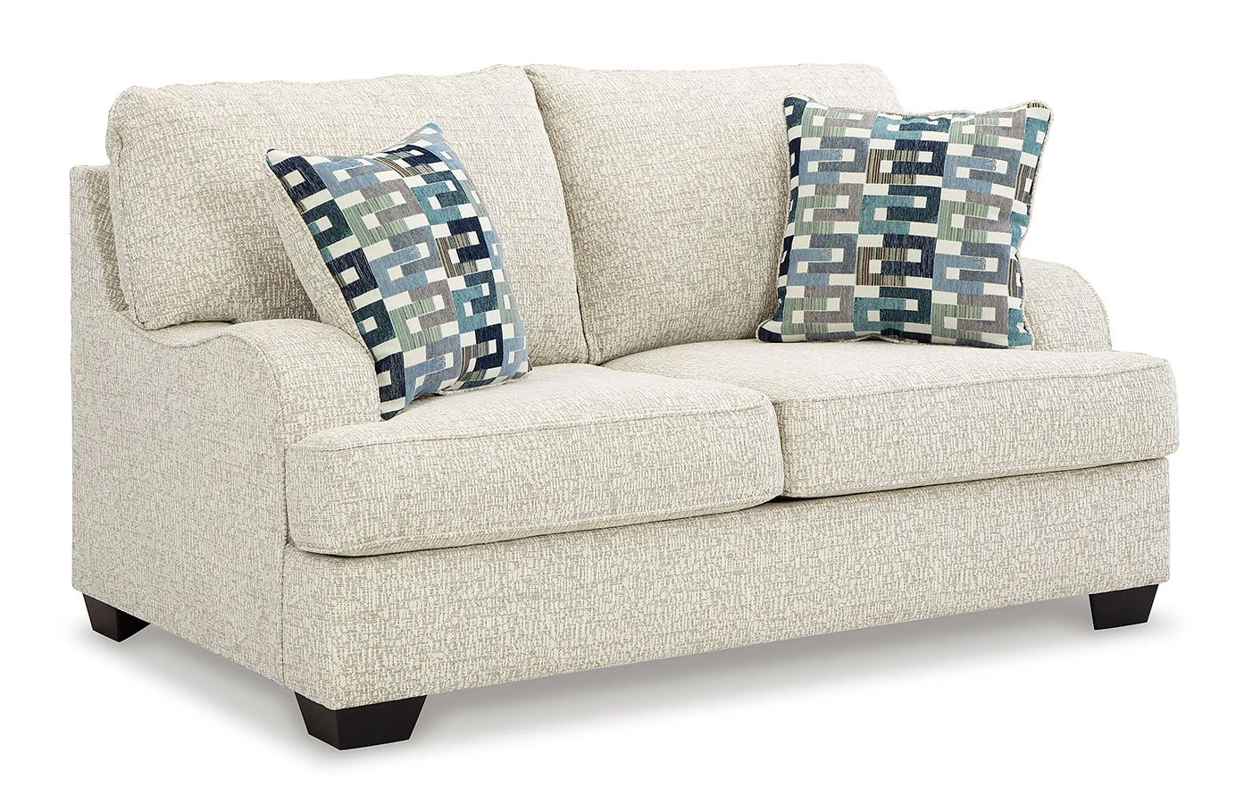 - OverviewThis Valerano loveseat by Signature Design has the corner on casual contemporary style and everyday comfort. Chic and subtly innovative, its crosshatched chenille upholstery is a forward-thinking take on fashionable neutrals. The sleek frame gets a soft, streamlined touch with sloping track arms. Eclectic accent pillows further appeal to your relaxed approach to modern flair.