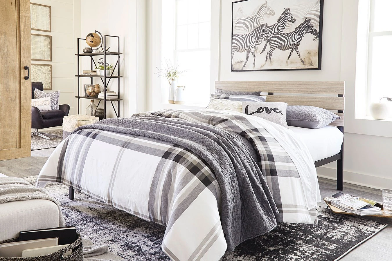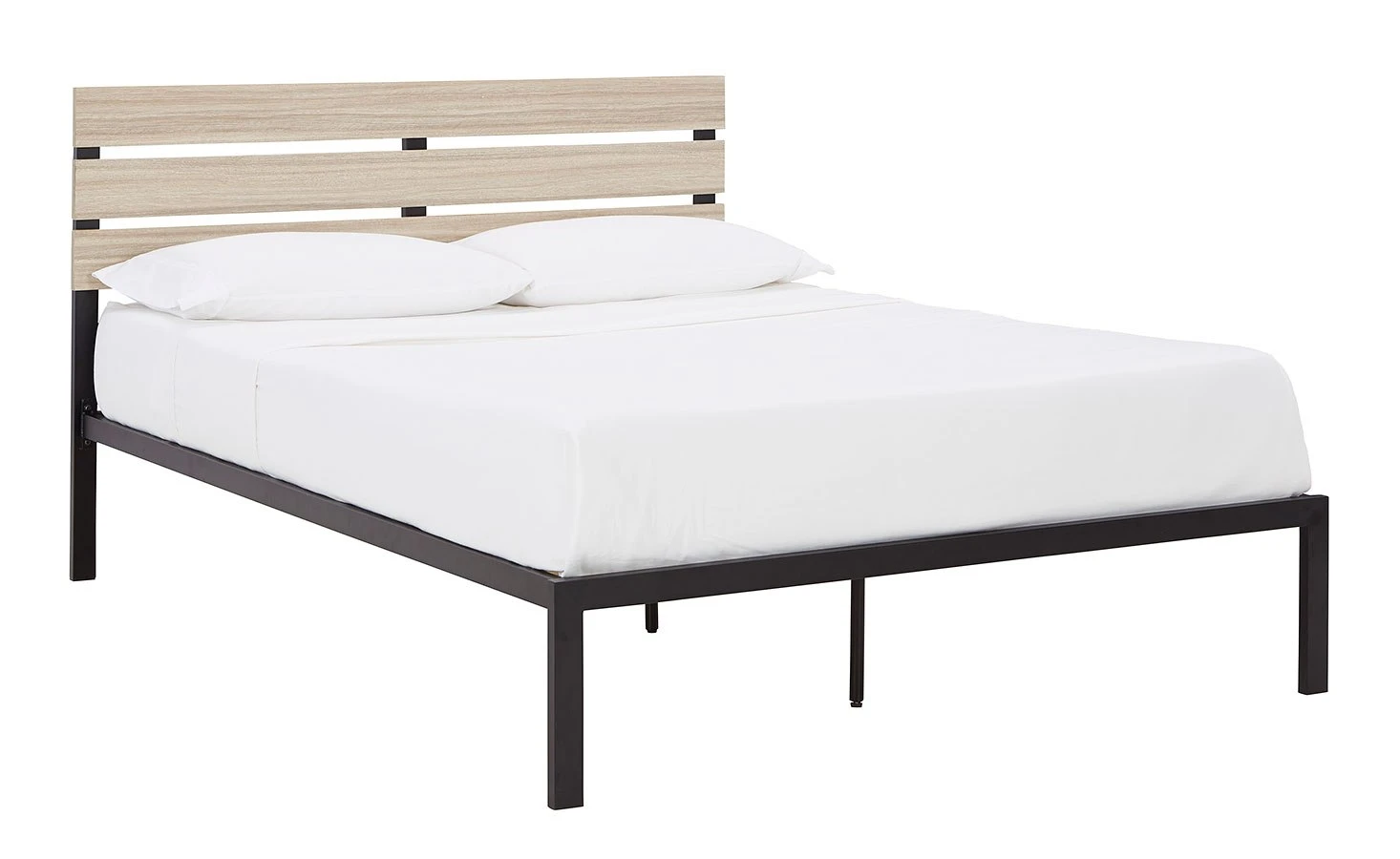 - OverviewThis streamlined Waylowe Platform Bed by Signature Design is the perfect finishing touch to any bedroom. The black metal frame is sleek and space-efficient, while the slat-detailed headboard creates intriguing contrast. To top it off, the low-profile slat foundation eliminates the need for a box spring.