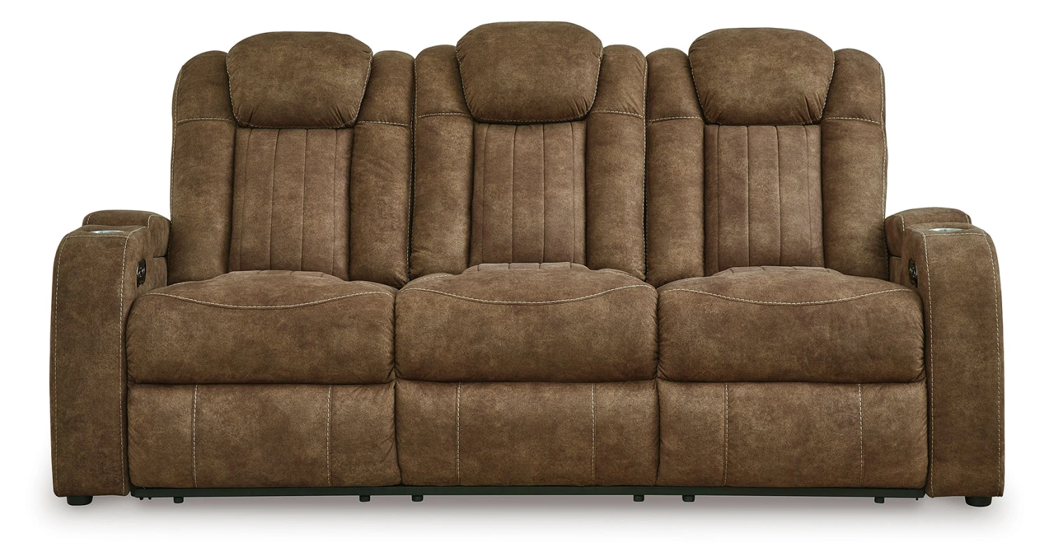 - OverviewFurnish your space with fashionable function in mind. This Wolfridge Power Reclining Sofa by Signature Design is defined by its rich tonal variation, handy storage space in the armrests and seamless one-touch reclining. The addition of USB charging makes it an apt addition to your home’s relaxation hub, expertly providing essential comforts to your living room lounging experience.