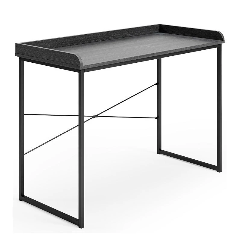 - OverviewElevate your home office with this simply sensational Yarlow home office desk by Signature Design. Pairing a blackened wood look with a black metal base for modern appeal, this minimalistic desk with ample work space is dressed to impress in a no-muss, no-fuss way.